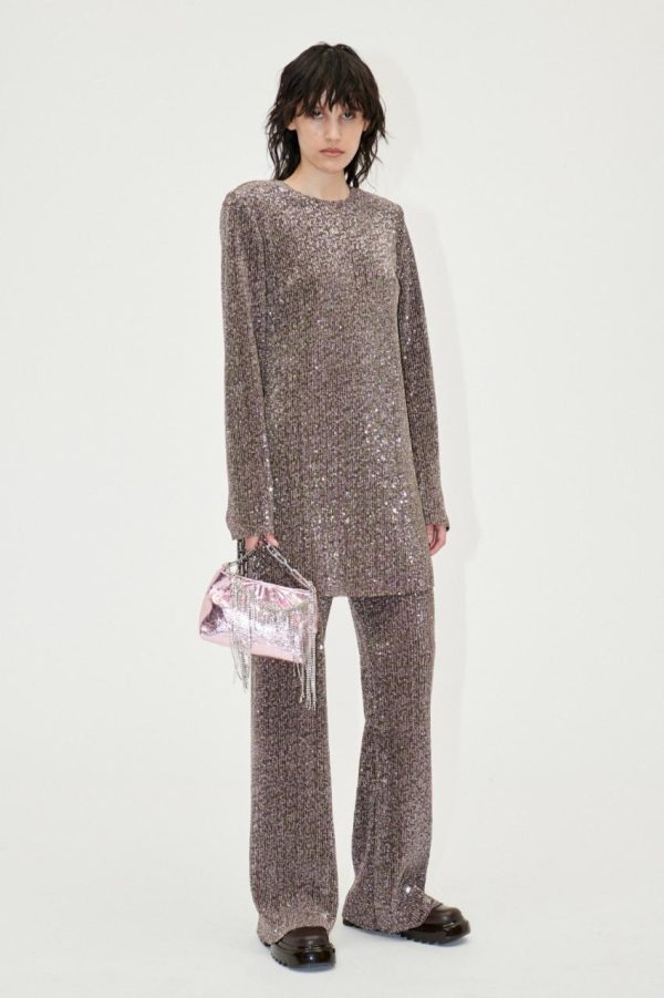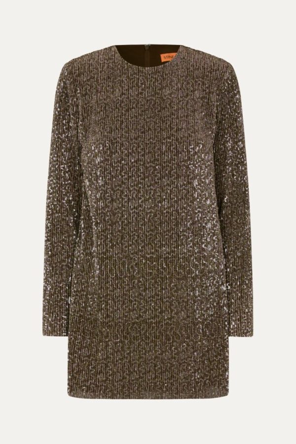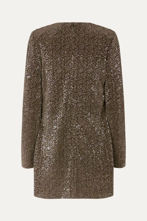 Boxy mini dress with a relaxed silhouette, long sleeves and crewneck. All over metallic sequin pattern. Pair with your favourite accessories from the collection.