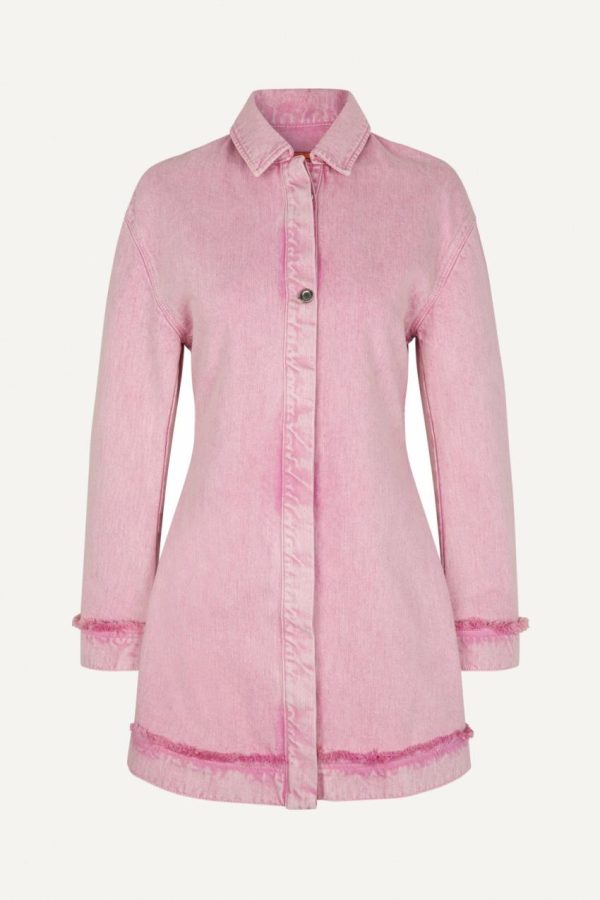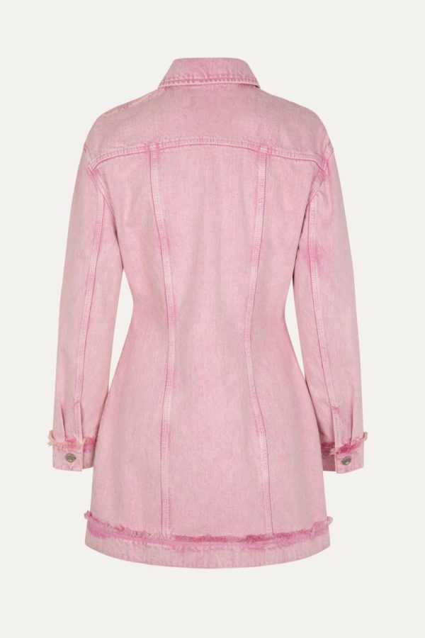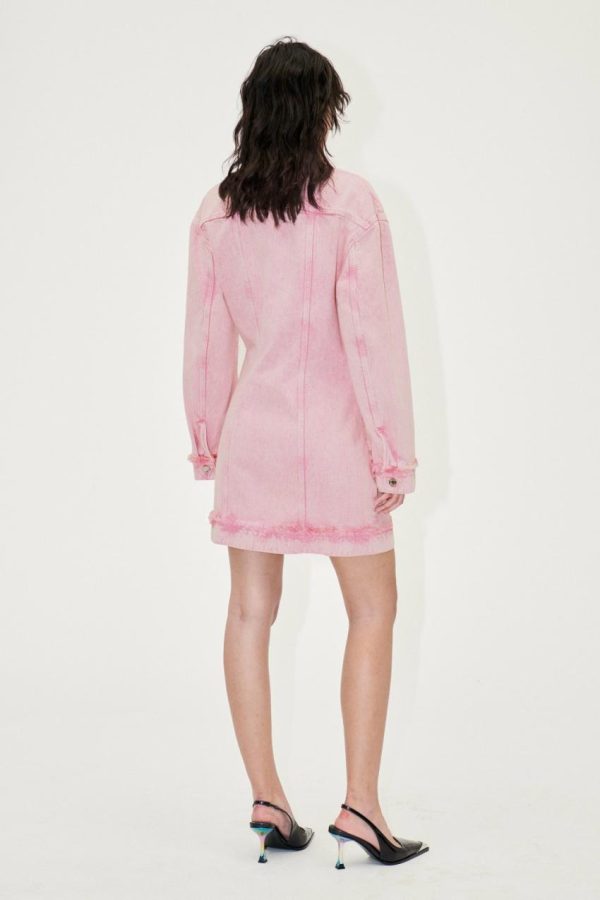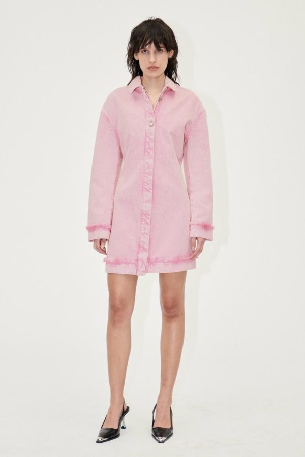Relaxed mini dress with long sleeves, hidden buttons and collar. Washed denim style material. 100% Organic Cotton. Pair with the Colorado Boots in Jet Black.