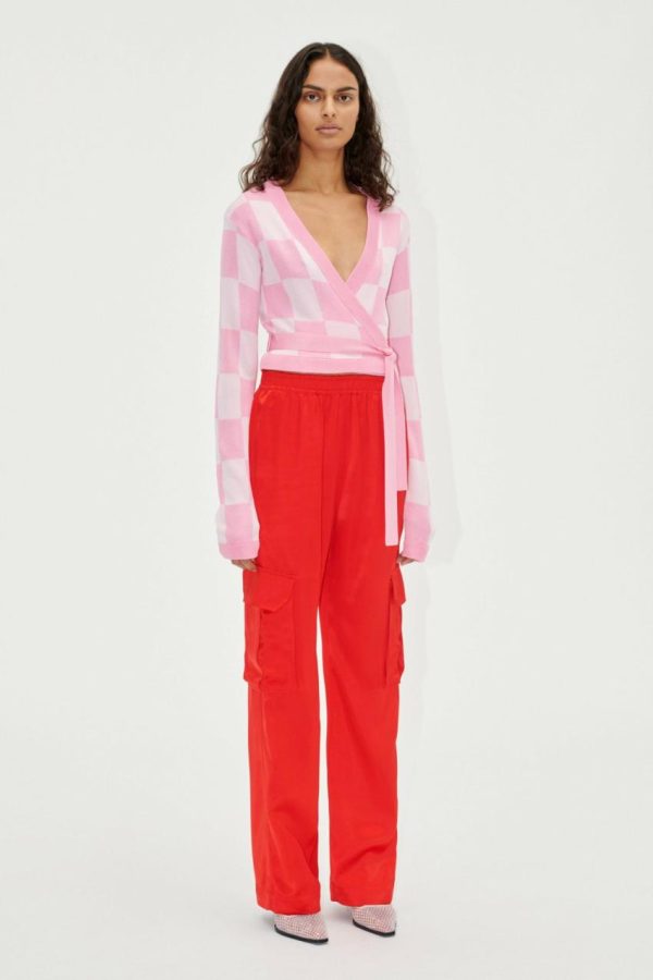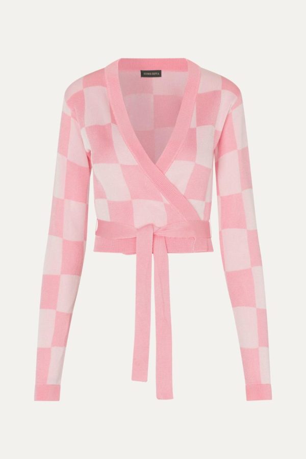 Long sleeve ballet style knit sweater with a V-neck, cropped wrap silhouette and long adjustable tie belt. Pair with the Markus Pants in Adonis.