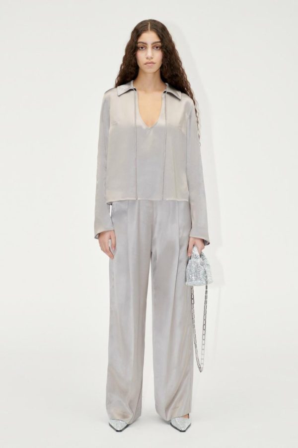 Oversized wide leg pants with elegant pleating, side pockets and high elasticated waistband with STINE GOYA logo. Pair with the Mikana Knit Top in Grey Stone and the Apollo Sneakers in Reflective.