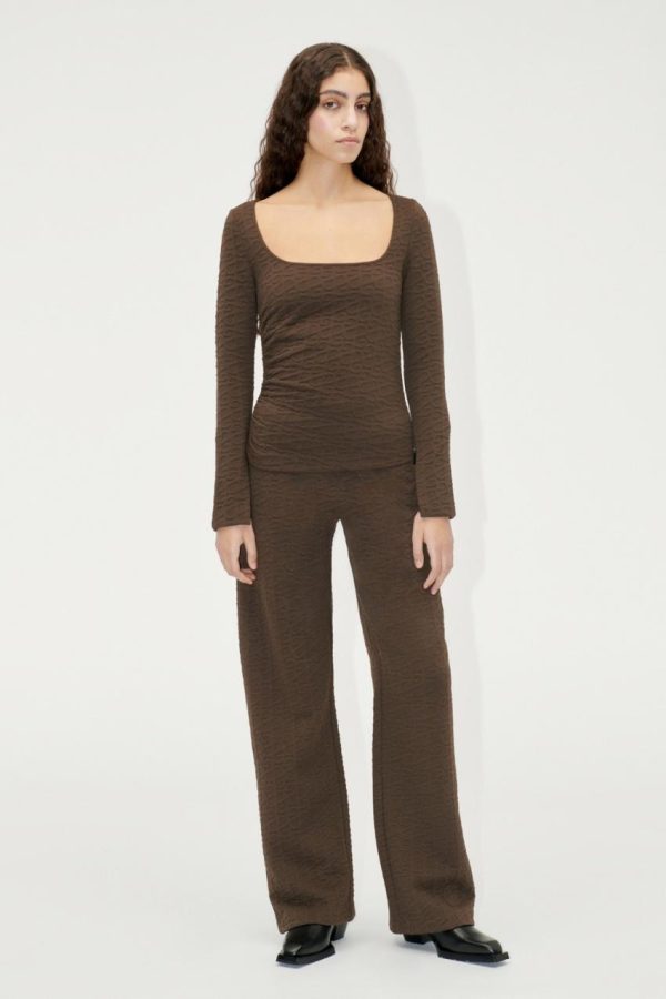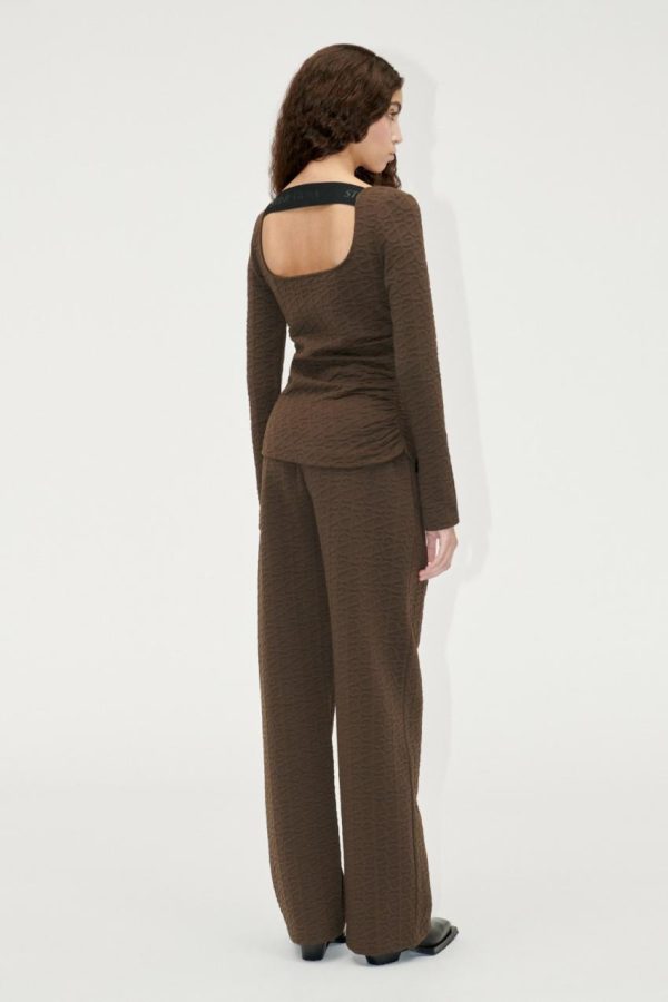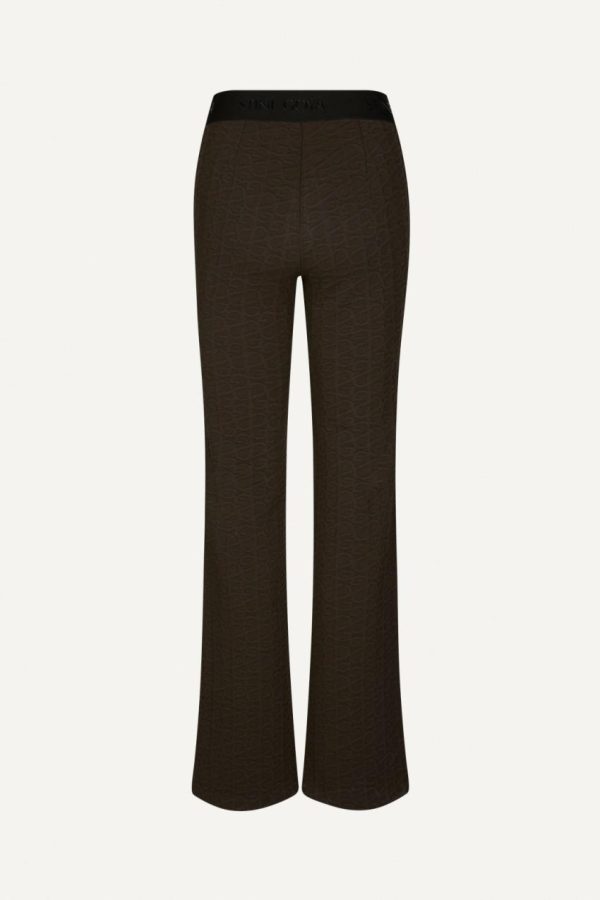 High waisted pants with straight leg fit, STINE GOYA logo waistband and textured logo pattern. Recycled Polyester blend. Pair with the Bowie Top in SG Logo and the Gurly Boots in Jet Black.