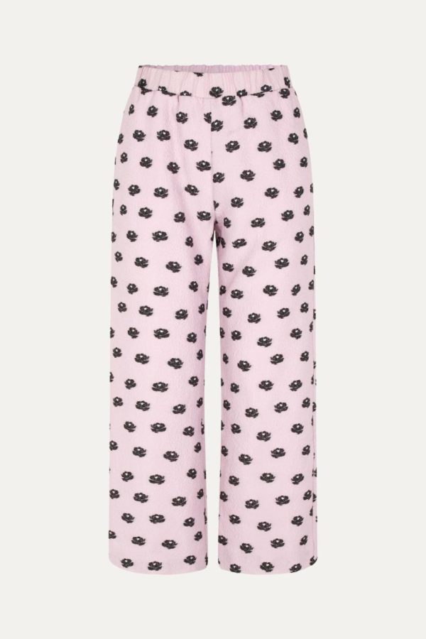 Relaxed ankle length pants with a straight leg fit, high elasticated waist and floral pattern. Recycled polyester blend. Pair with the Kinsley Blouse in Peonies.