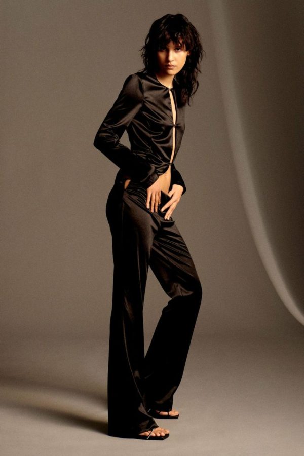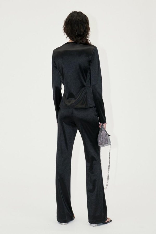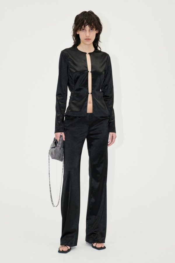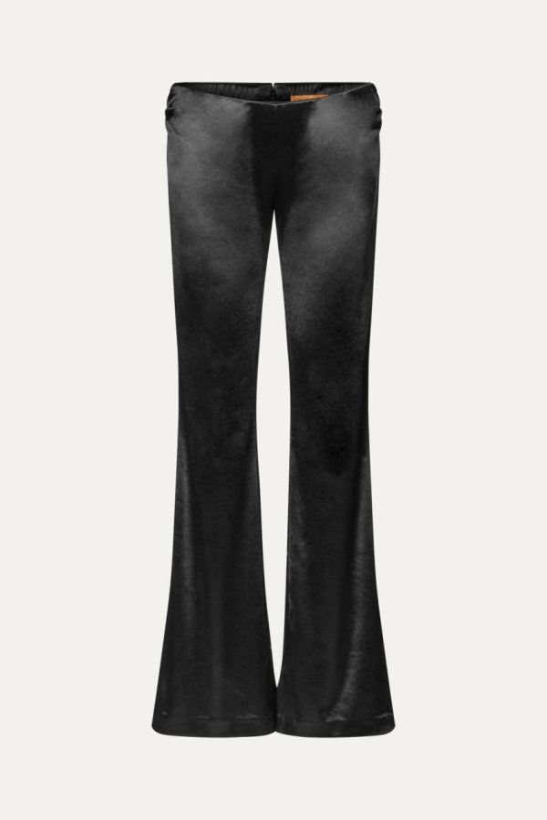 Stretchy low rise pants with a straight leg silhouette and cut waistband detail with SG logo. Pair with the Lacey Top in Jet Black and the Piza Heels in Jet Black.
