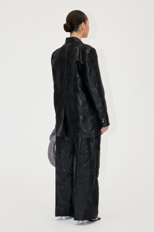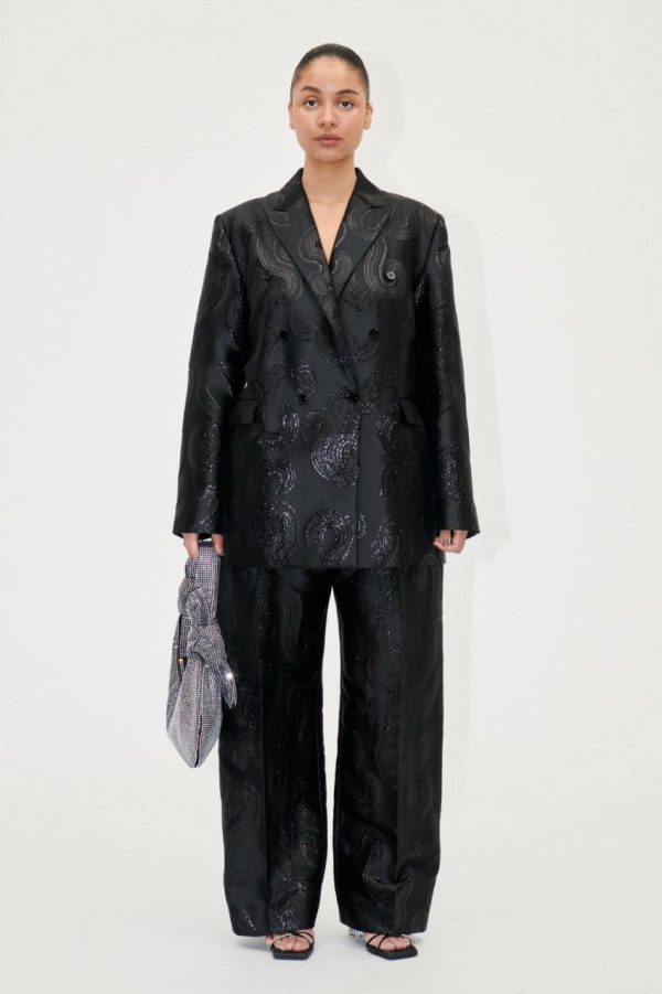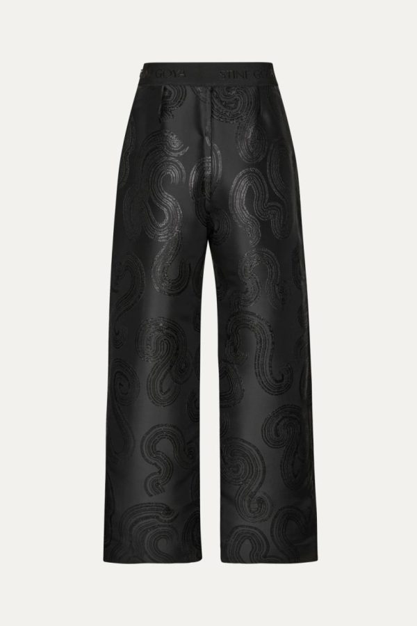 Chic wide leg pleated pants with high elasticated waist, side pockets and monochrome pattern. Recycled Polyester blend. Complete the look with the Theo Blazer in Swirl and the Allison Boots in Jet Black.