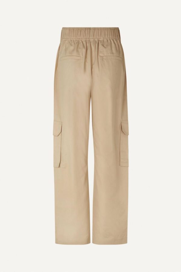 Minimalist cargo-style pants with a high elasticated waistband, patch and side pockets. 100% Organic Cotton. Pair with your favourite sweater from the collection.