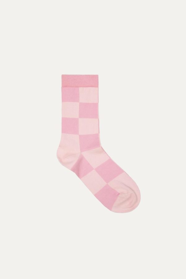 Soft and stretchy cotton blend crew socks with heel and toe reinforcements, ribbed elasticated cuffs and checked pattern.