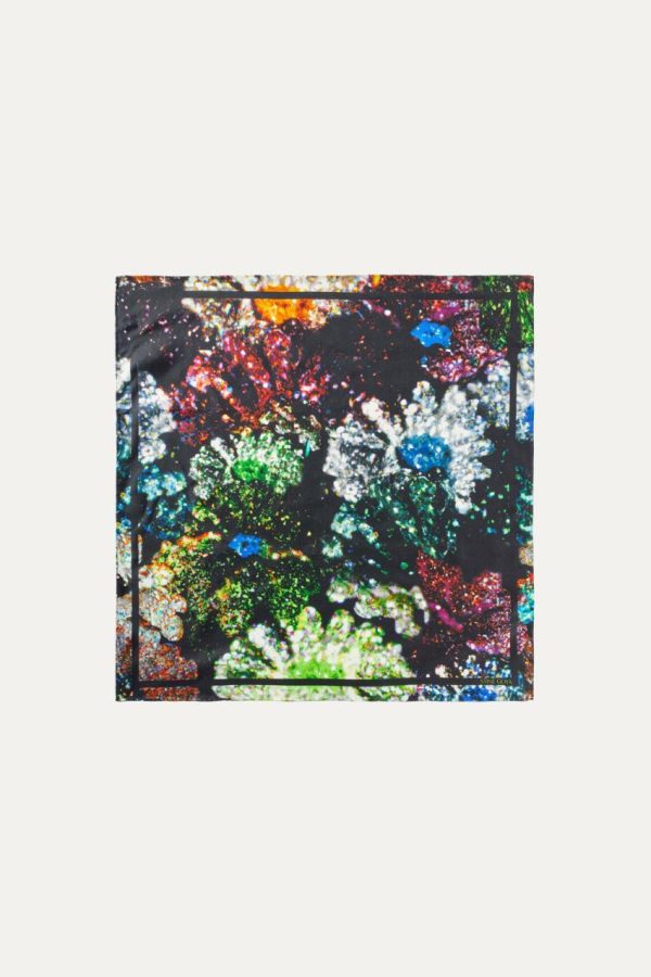 Elevate your style with this exquisite square silk scarf featuring a dazzling floral pattern and elegant border, complete with the signature STINE GOYA logo detail. Crafted from premium 100% Silk, this versatile accessory offers endless styling possibilities – drape it gracefully around your neck, weave it through your hair for a chic look, or adorn your favorite bag with a pop of sophisticated color.