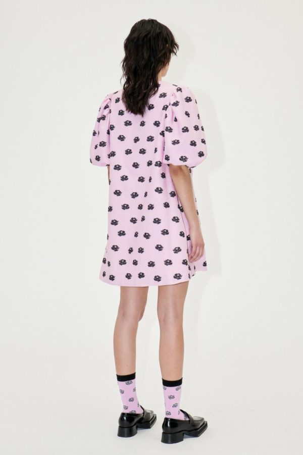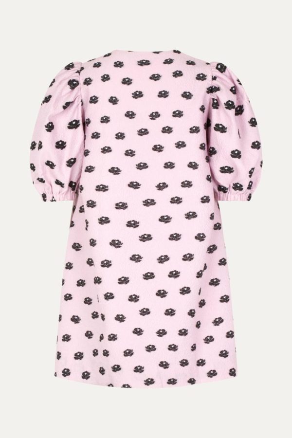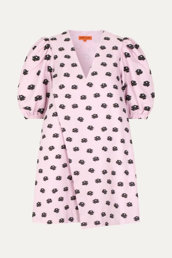 Elevate your style with this chic mini dress featuring elegant puffed elbow-length sleeves and a flattering V-neckline. The stunning metallic floral pattern creates a sophisticated statement piece that transitions effortlessly from day to night. Crafted from eco-conscious recycled materials for a fashionable yet responsible choice. Perfectly pairs with the Gurly Boots in Jet Black for a complete curated look.
