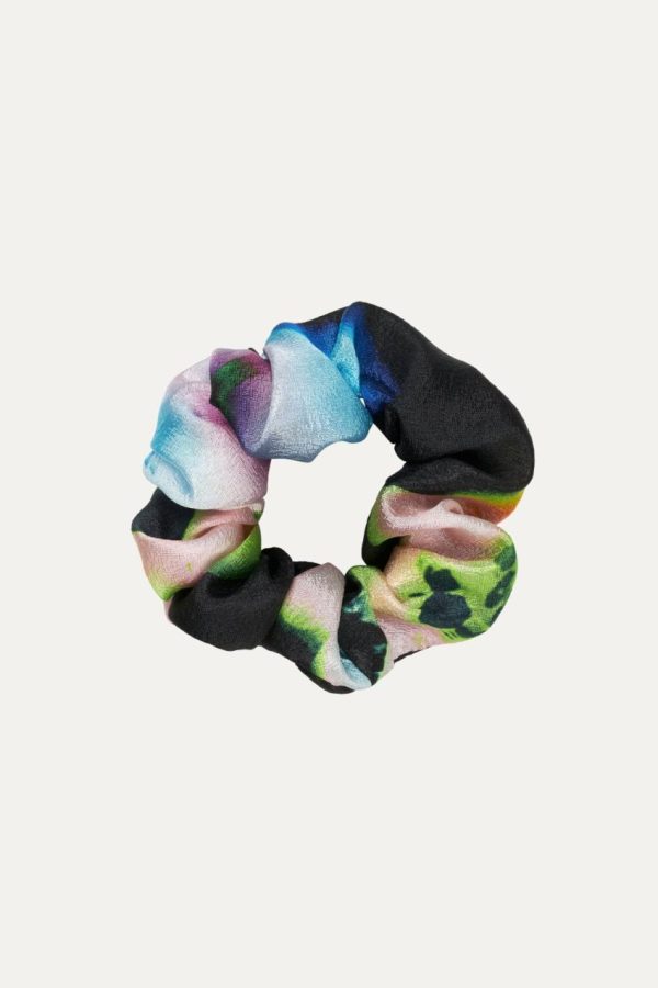 Elevate your everyday style with our vibrant scrunchie featuring a captivating abstract floral design and a reliable elastic band that holds securely without pulling. Crafted from eco-conscious materials.