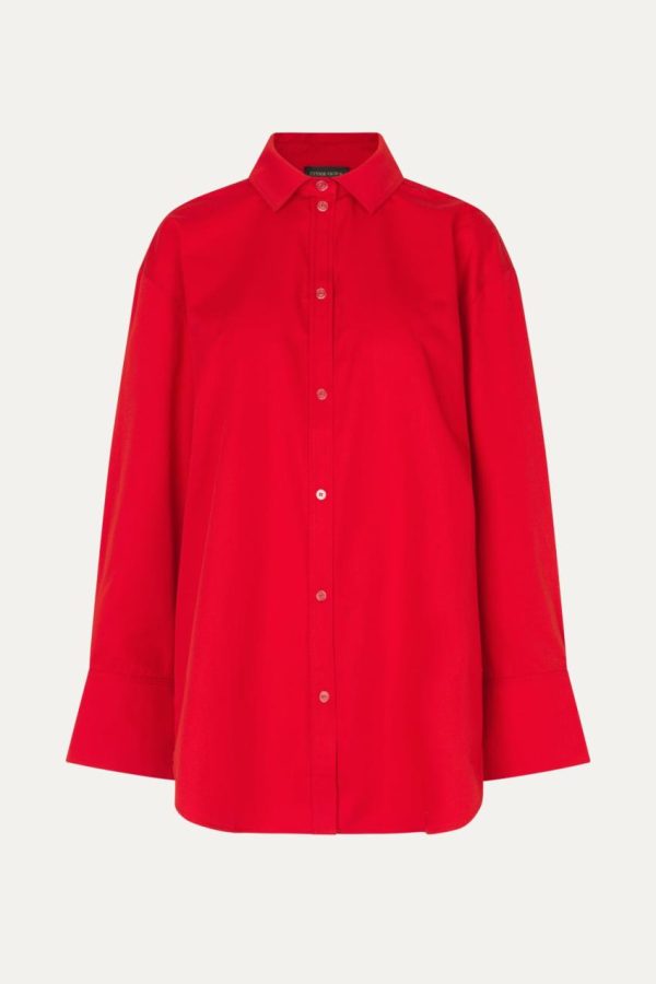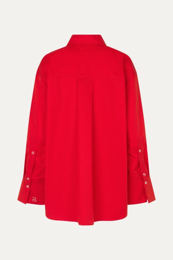 Elevate your wardrobe with this crisp, vibrant button-down blouse featuring a contemporary oversized silhouette, classic collar design, and statement wide sleeves with elegant cuffs. 100% Organic Cotton. Perfectly pairs with the Leon Shorts in Fiery Red for a complete look.
