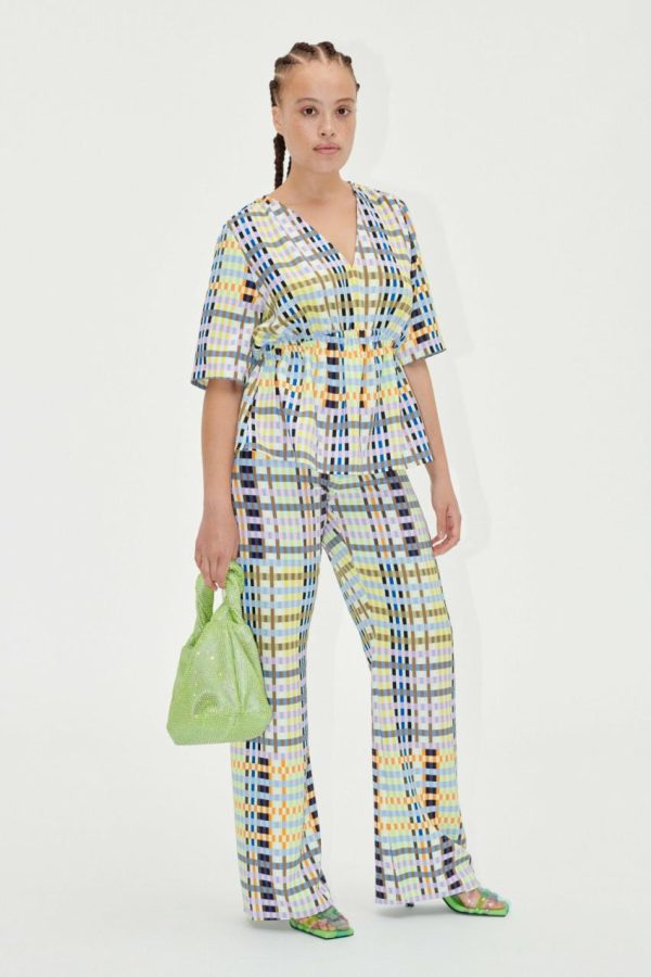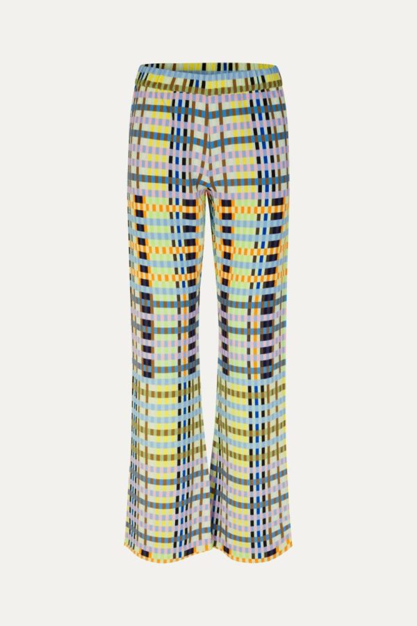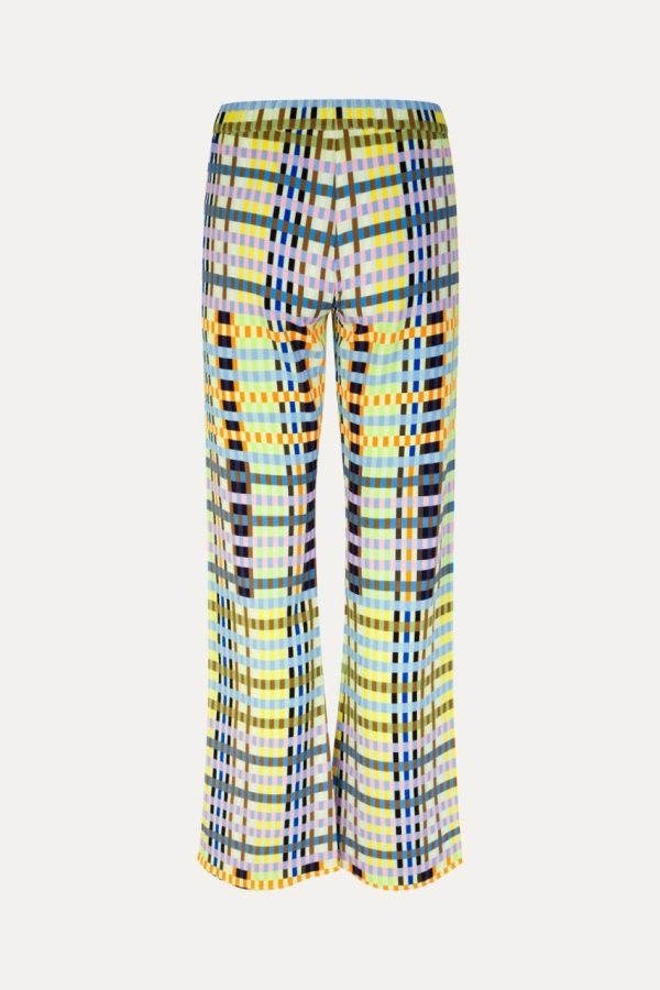 Elevate your wardrobe with these chic straight leg pants featuring a sophisticated flare silhouette and a comfortable high elasticated waist. The eye-catching check pattern adds timeless elegance to any outfit. Perfectly pairs with the Gabriel Blouse in Micro Check and the Crystal Shoes in Marina for a complete curated look.