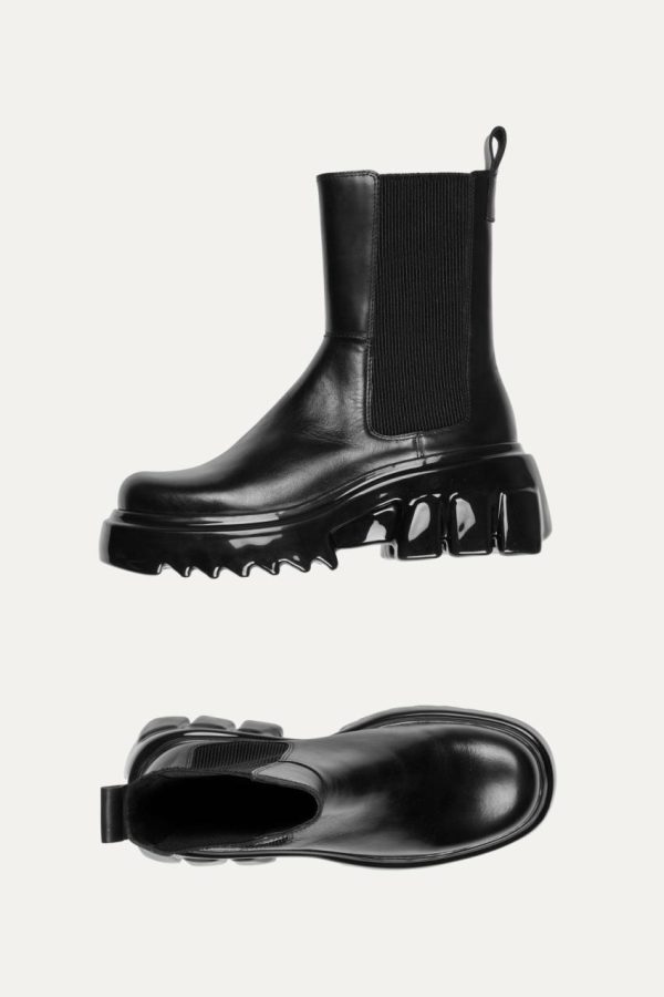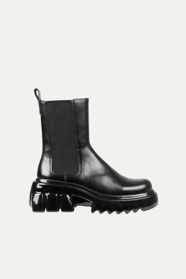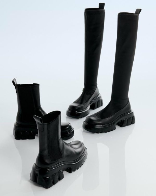 Elevate your style with these contemporary chelsea boots featuring a fashion-forward layered platform design, substantial wedge heel, and sophisticated square toe with softened edges.