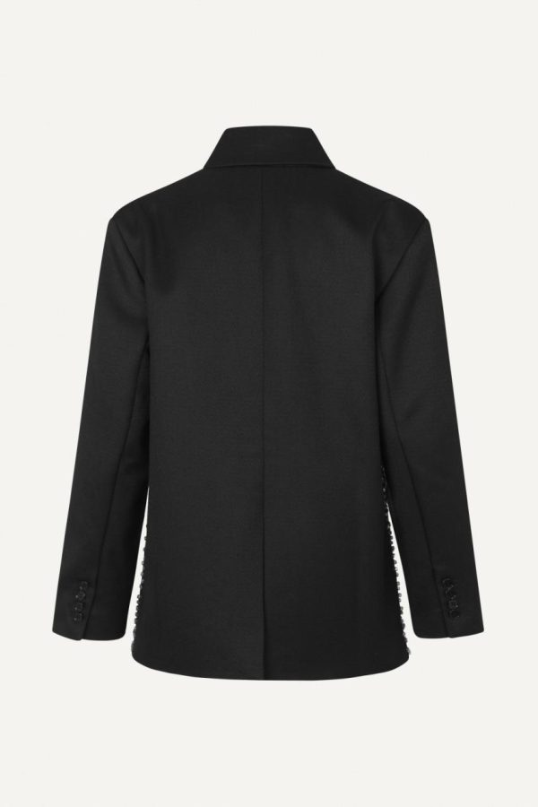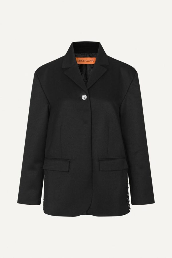 Elevate your professional wardrobe with this sophisticated single-breasted blazer featuring discreet hidden buttons, exquisite crystal embellishment details, and a sharp, tailored fit. Crafted from premium recycled materials for the eco-conscious fashionista. Recycled Polyester blend. Fully lined with 100% Recycled Polyester. Perfectly pairs with the Cairo Pants in Jet Black for a complete polished look.