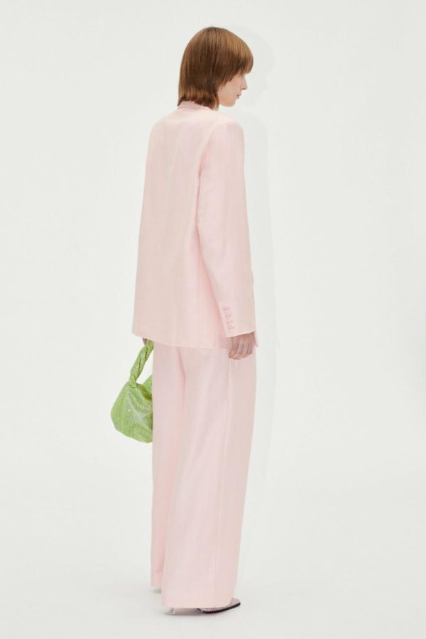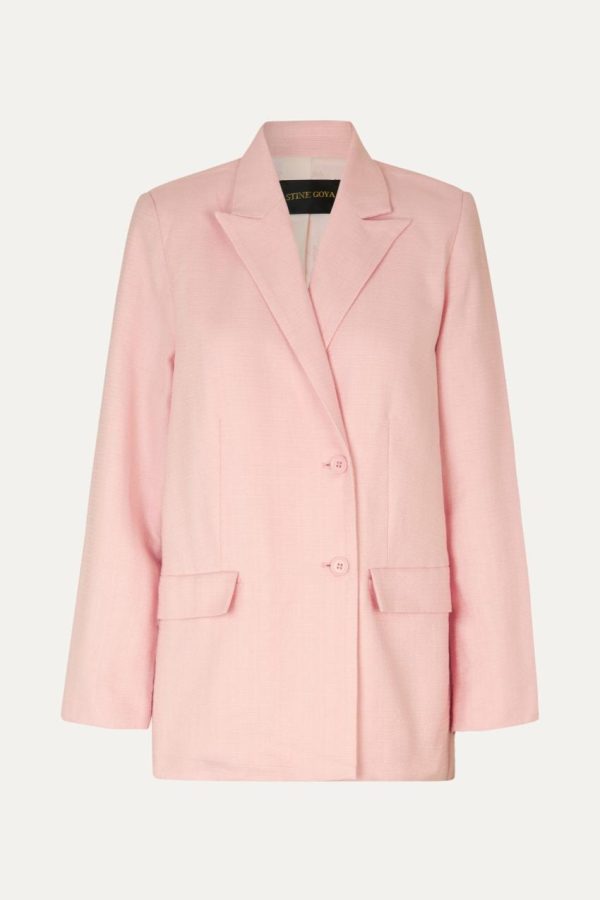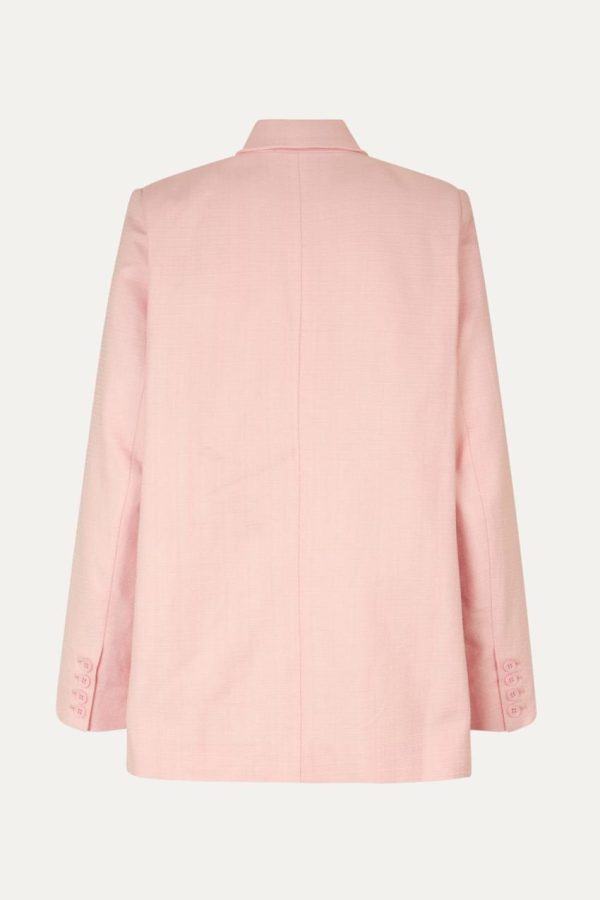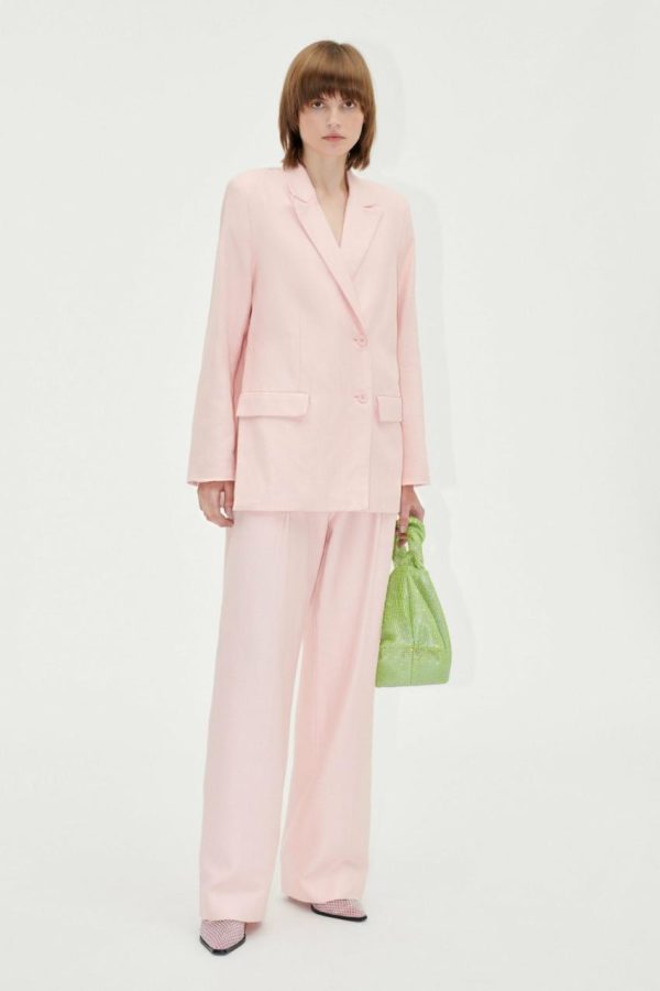 Crisp double breasted blazer with a relaxed boxy fit, elegant seams and wide long sleeves. 100% Organic Cotton. Fully lined with 100% Recycled Polyester. Pair with the Jesabelle Pants in Rose Quartz.