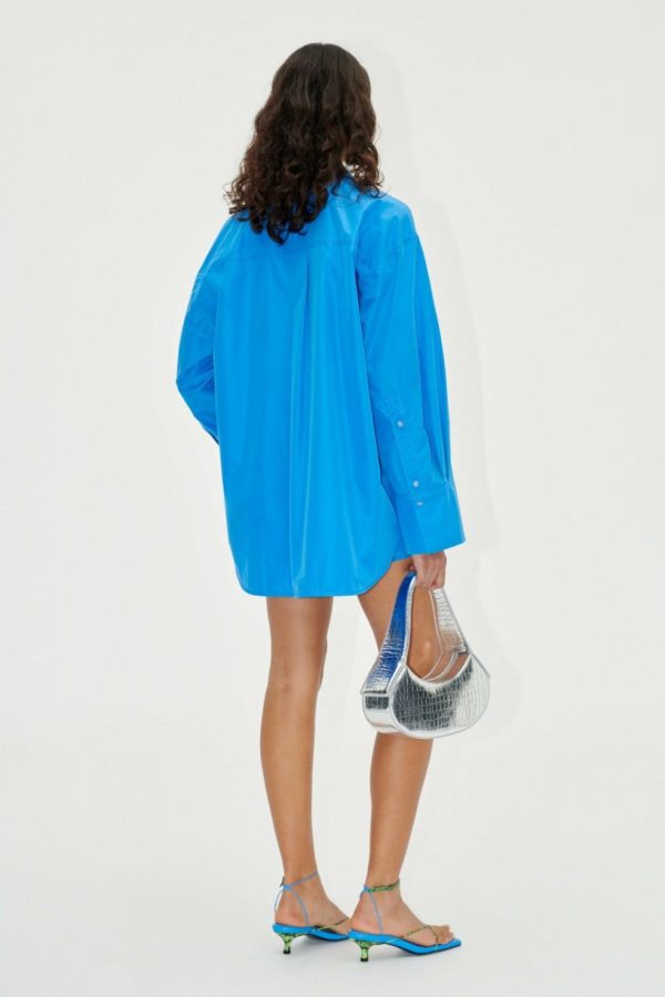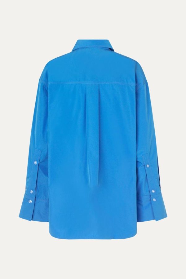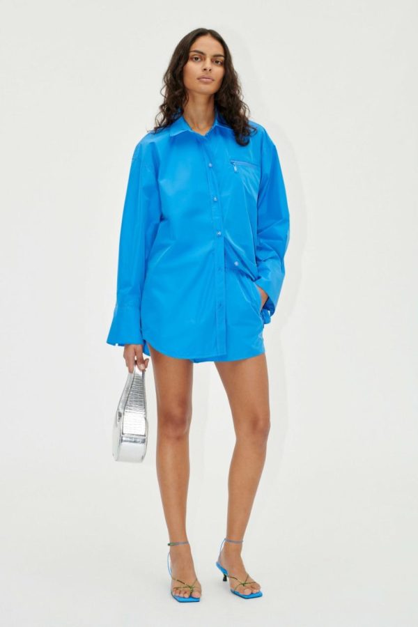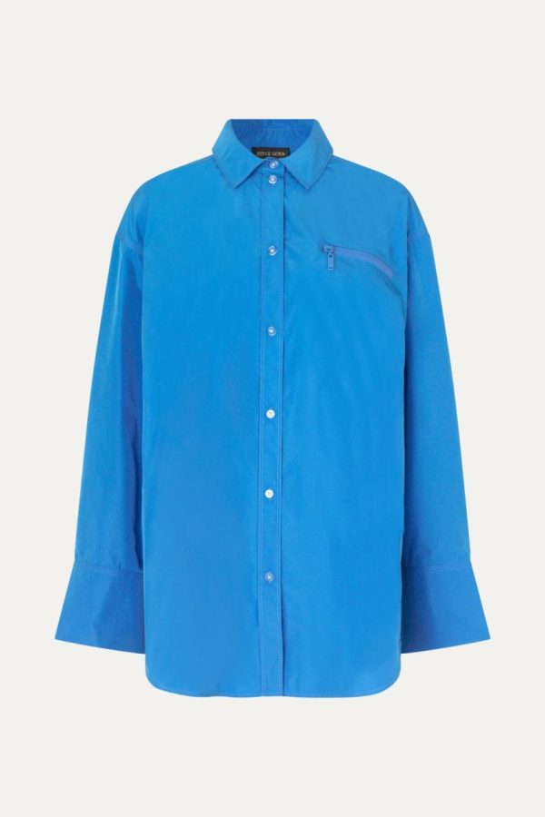 Lightweight and oversized button down top with collar, wide long sleeves with cuffs and chest pocket with zip detail. Pair with the Oska Shorts in Marina.
