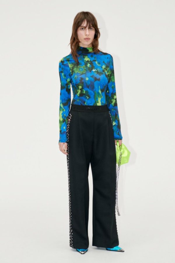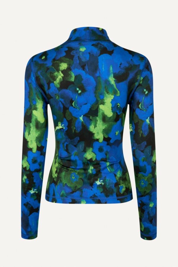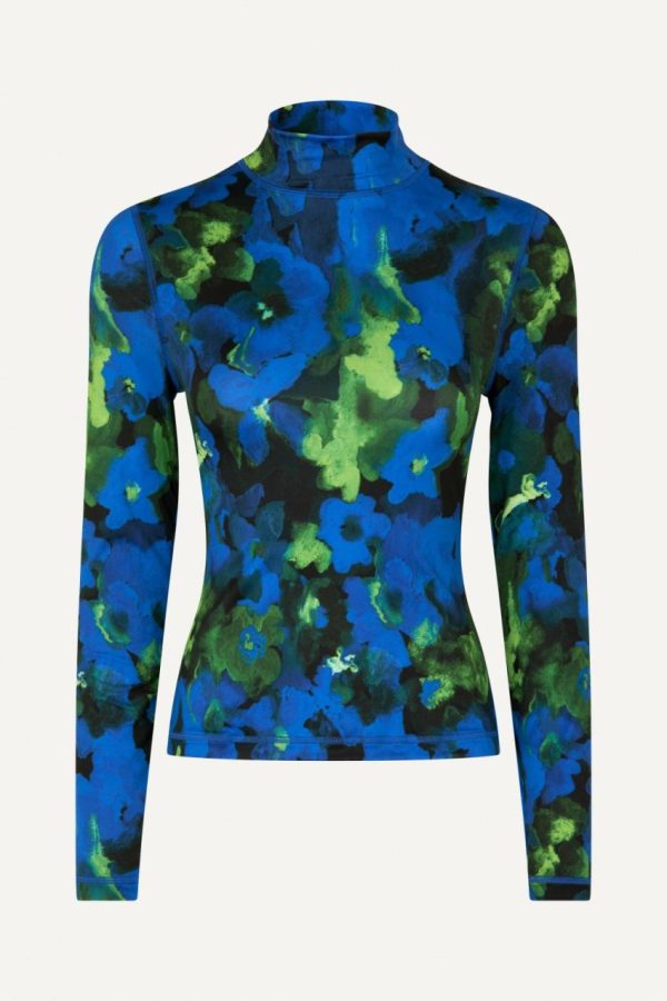 Slim fit jersey top with turtleneck, long sleeves and abstract pattern. Lightweight and stretchy material. Layer under the Oriza Dress in Frosted Floral Night.