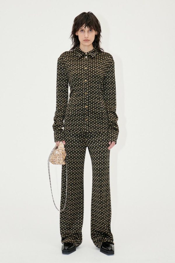 Classic button up top with a slim fitting silhouette, long cuffed sleeves, and detailed STINE GOYA logo pattern. Pair with the matching Magic Pants in SG Logo.
