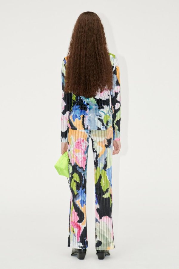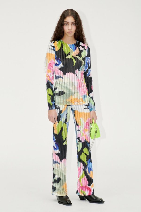 Long sleeve top with a slim fitting silhouette and bright floral pattern on semi-transparent ribbed material. Pair with the Andy Pants in Artistic Floral.
