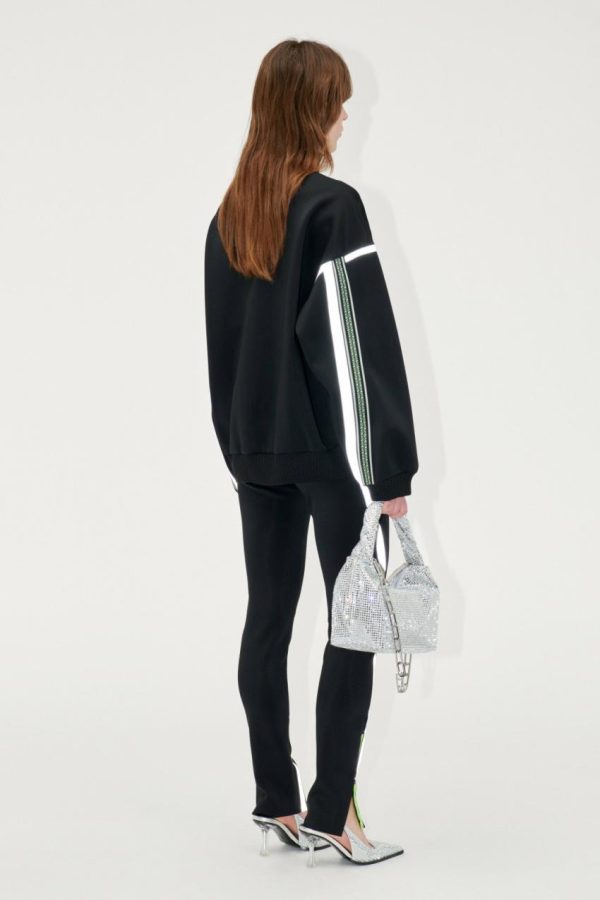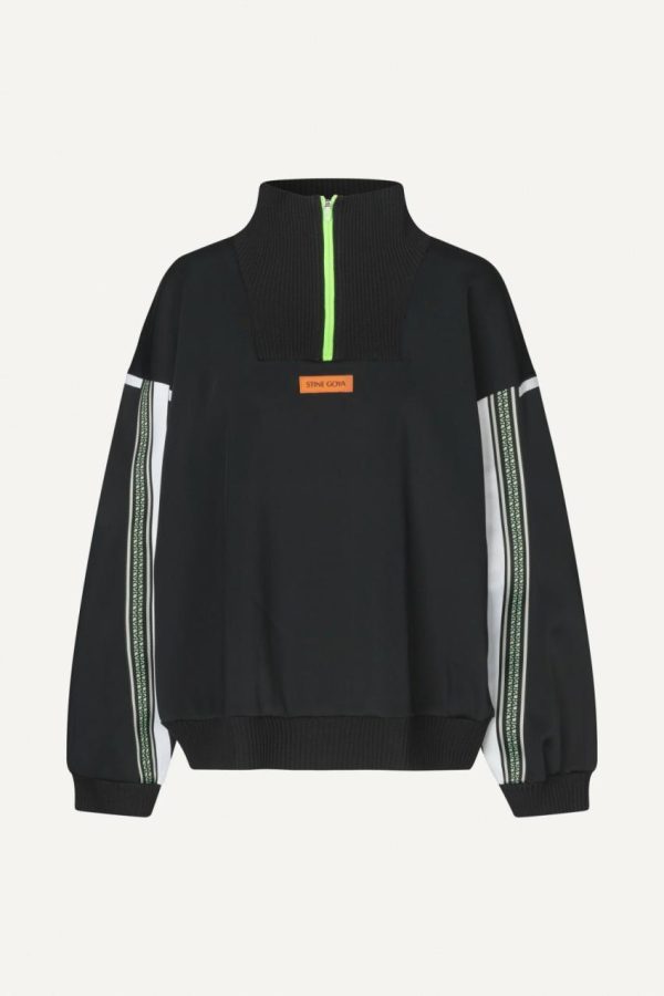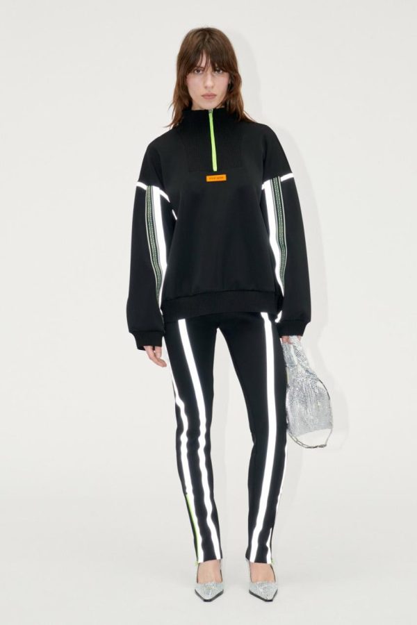 Slouchy sweater with 1/4 length zip, reflective stripe pattern and soft stretchy material. Recycled Polyamide blend. Pair with the Mavis Pants in Jet Black.